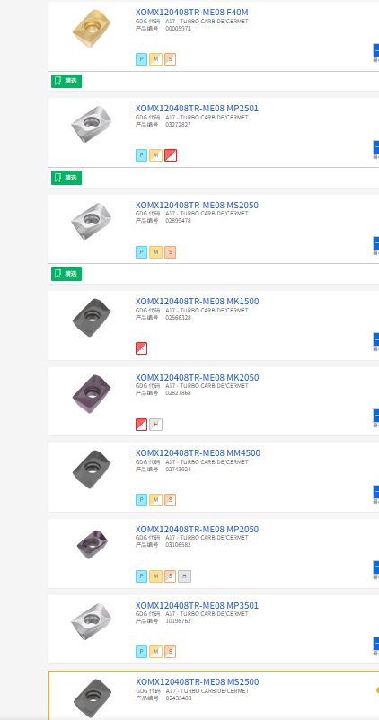 山高銑削刀片XOMX120408TR-ME08-CS MK2050球墨鑄鐵加工