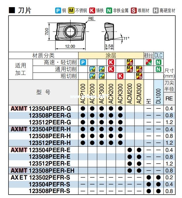 SUMITOMO/日本住友銑刀片AXMT123508PEER-H ACP100鋼件高速加工